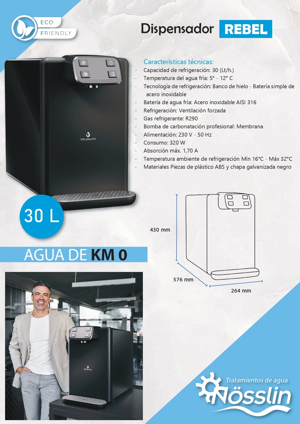 • Tecnología avanzada: Incorpora un sistema de refrigeración y calentamiento de última generación, asegurando siempre agua a la temperatura ideal.